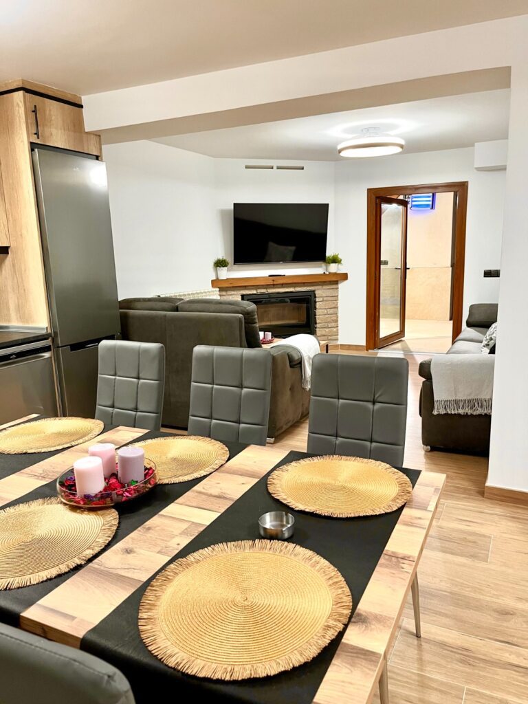 Nuestra casa, completamente nueva, combina una decoración rústica y moderna, creando un ambiente único y acogedor. Cuenta con una capacidad de mínimo 4 personas y máximo 9. Tiene una habitación de matrimonio (1,50), dos habitaciones con camas de 0,90 y una habitación con tres camas de 0,90. Además, dispone de tres cuartos de baño, lo que garantiza comodidad y privacidad para todos.